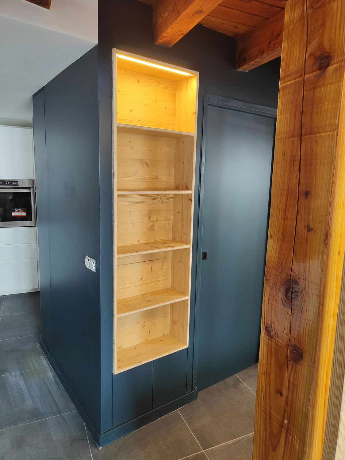 Placards, dressings, bibliothèques sur mesure, meubles personnalisés ou habillages muraux : chaque réalisation est pensée dans les moindres détails pour s’adapter parfaitement à votre intérieur. Mon objectif est de créer des espaces à la fois pratiques, esthétiques et durables, en harmonie avec votre style de vie et l’identité de votre habitat, qu’il soit contemporain ou typiquement savoyard.
